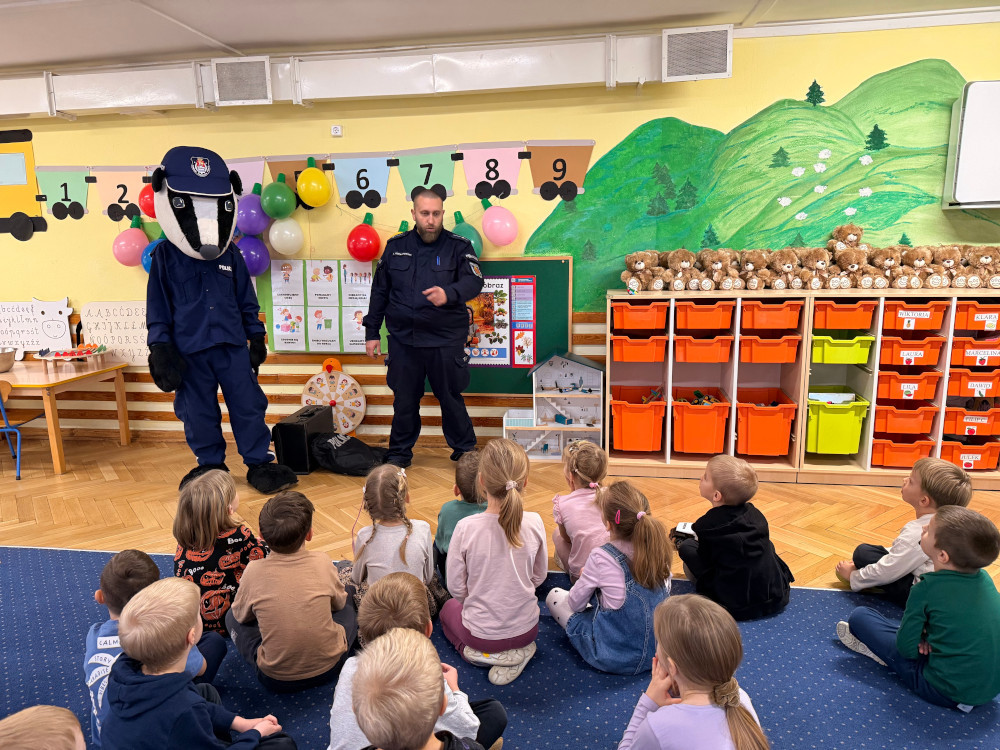 Mając na uwadze wspólny cel, czyli bezpieczeństwo dzieci, policjanci prowadzą pogadanki z najmłodszymi. Profilaktyka jest bardzo ważna od najmłodszych lat i procentuje w przyszłości. Każde spotkanie jest bardzo ciekawe zarówno dla dzieci, jak i dla funkcjonariuszy. Tym razem policjant zajmujący się na co dzień profilaktyką z komendy na Woli mł. asp. Karol Rozwadowski, wspólnie z policyjnym Borsukiem, odwiedził Przedszkole nr 350.