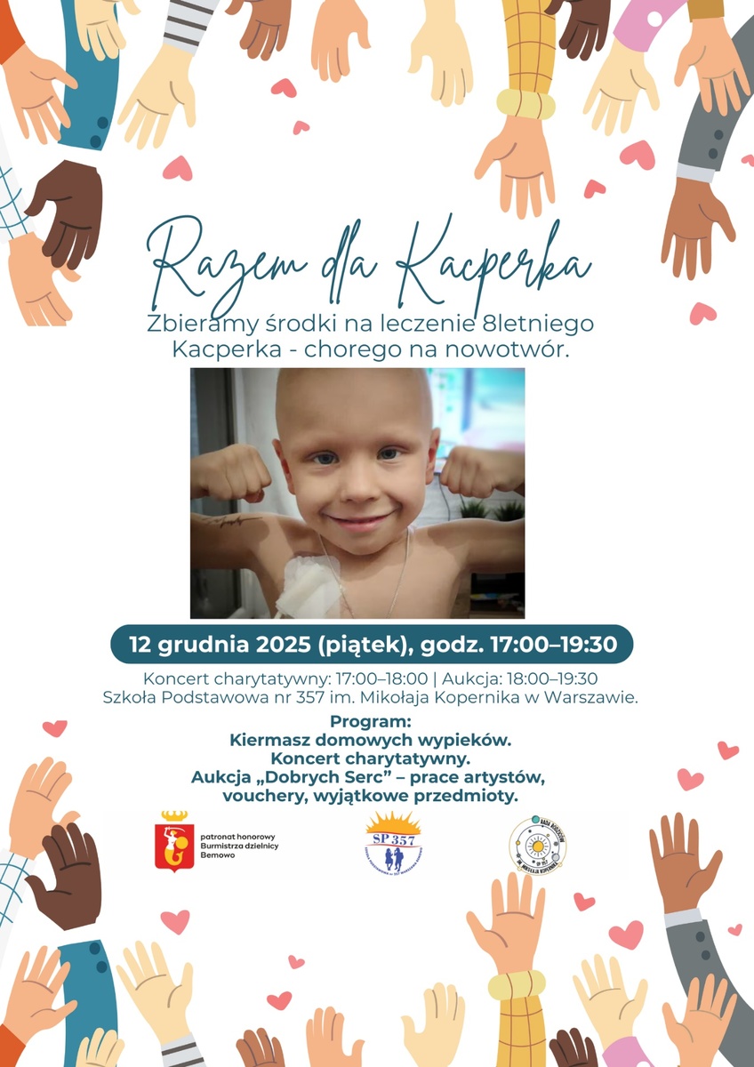 Policjanci z Woli, Bemowa i KSP aktywnie włączyli się w pomoc dla 8-letniego Kacperka, syna naszego policjanta. 12 grudnia 2025 roku (piątek) w godz. 17:00–19:30 odbędzie się wyjątkowe wydarzenie charytatywne „Razem dla Kacperka”, którego organizatorem jest Szkoła Podstawowa nr 357 przy ul. Zachodzącego Słońca 25 w Warszawie. Kacperek jest uczniem tej szkoły. Serdecznie zapraszamy!