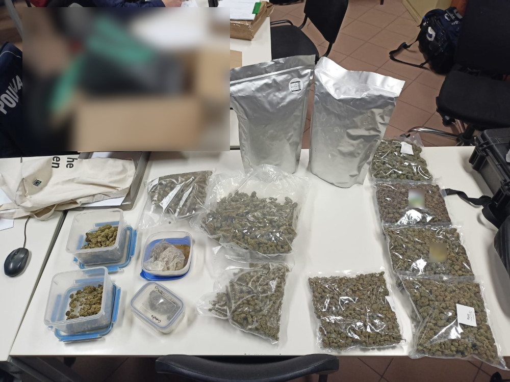 W trakcie rozmowy podejrzenia policjantów wzbudził charakterystyczny zapach mogący świadczyć o obecności nielegalnych środków. Policjanci przystąpili do przeszukania i ujawnili na balkonie dwie torby oraz karton z zawartością suszu roślinnego.
