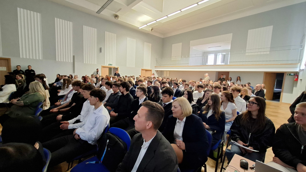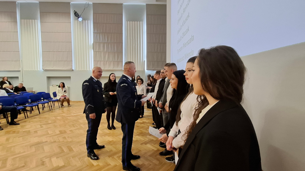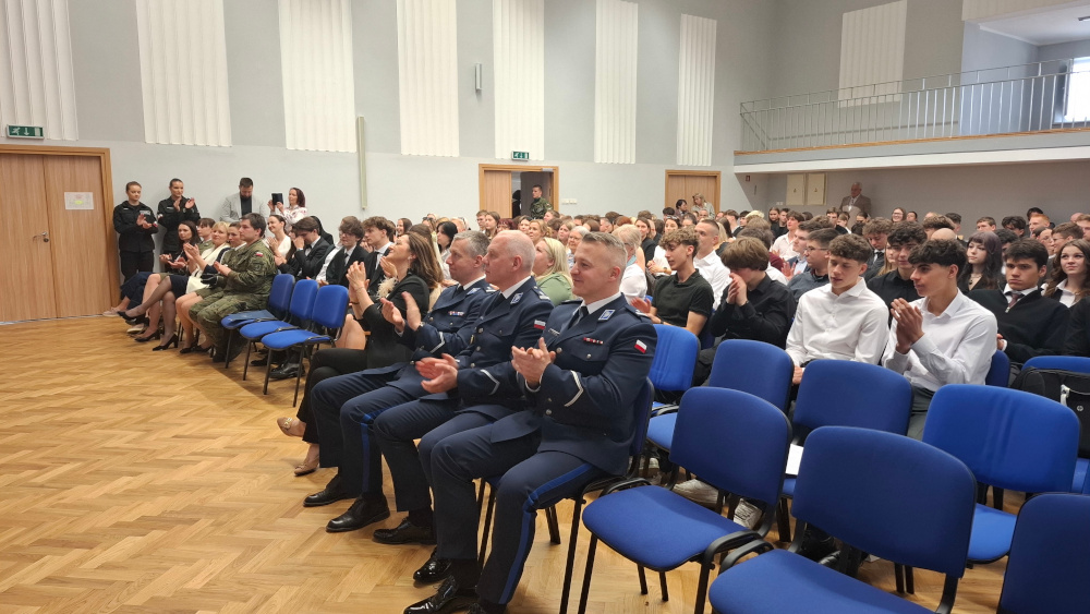 W piątek w XXXVIII Liceum Ogólnokształcącego im. Michała Konarskiego i Technikum nr 26 w auli im. Dyrektora Wincentego Czerwińskiego odbyło się uroczyste zakończenie roku szkolnego dla klas maturalnych. W wydarzeniu, obok dyrekcji i grona pedagogicznego, wzięli udział przedstawiciele Policji, podkreślając wyjątkowy charakter klas o profilu mundurowym.