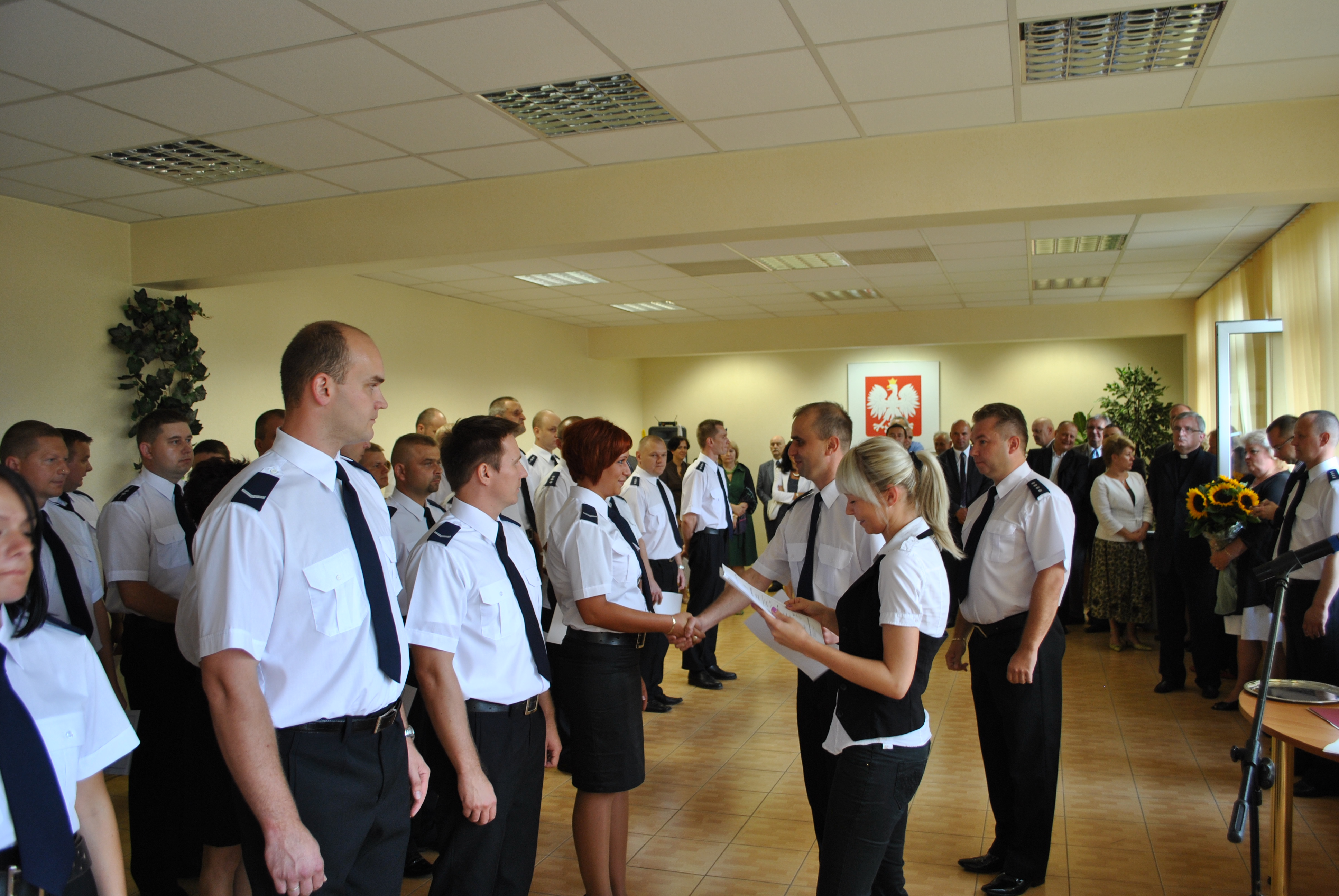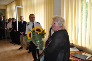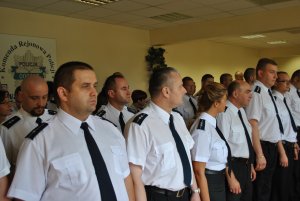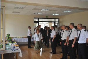 Komendant jednostki przywitał zgromadzonych gości i bohaterów święta. „Wielokrotnie wykonujecie swoje obowiązki kosztem swoich rodzin, które zapewne odczuwają wasz brak, na co dzień. Mam nadzieję, że społeczeństwo, któremu służycie będzie z uznaniem odbierało Wasz codzienny trud – takie słowa skierował do zebranych policjantów i pracowników cywilnych. Z okazji Święta Policji padły również życzenia bezpieczeństwa podczas służby i satysfakcji z wykonywanych obowiązków.