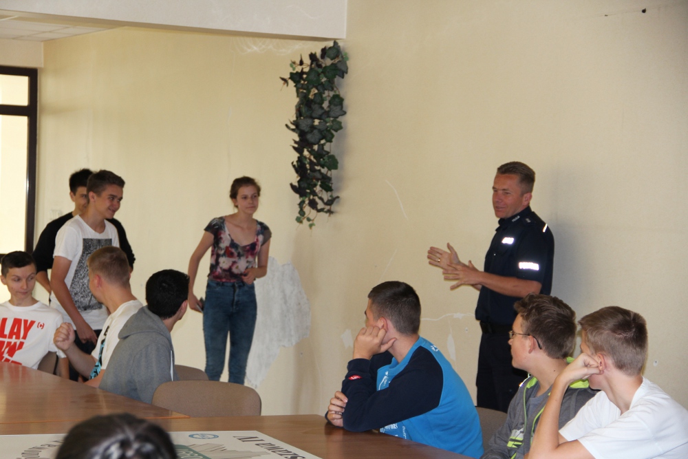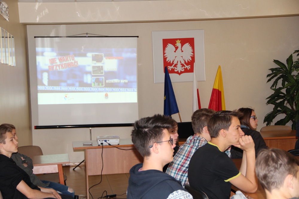 Naczelnik Wydziału Profilaktyki Społecznej, Nieletnich i Patologii kom. Jarosław Grzywacz zwrócił uwagę na zagrożenia, z którymi mogą spotkać się młode osoby oraz w jaki sposób należy ich unikać. Następnie funkcjonariusze zaprezentowali młodzieży filmy profilaktyczne pt. Nie warto ryzykować.