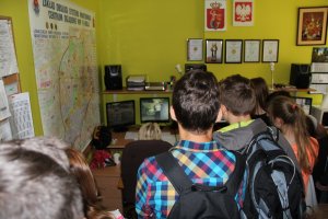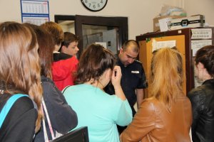 Wczoraj grupa uczniów z gimnazjum nr. 81 odwiedziła Komendę Rejonową Policji Warszawa IV. Młodzież z zainteresowaniem zwiedzała budynek komendy. Uczniowie mieli okazję przyjrzeć się z bliska pracy dyżurnych oraz zobaczyć ulice naszego miasta na ekranach miejskiego monitoringu.